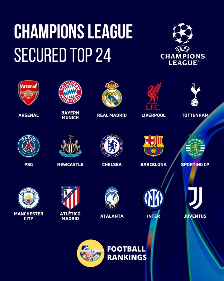 皇马、利物浦、热刺、巴黎、纽卡、切尔西、巴萨、葡萄牙体育、曼城、马竞、亚特兰大、国米、尤文
