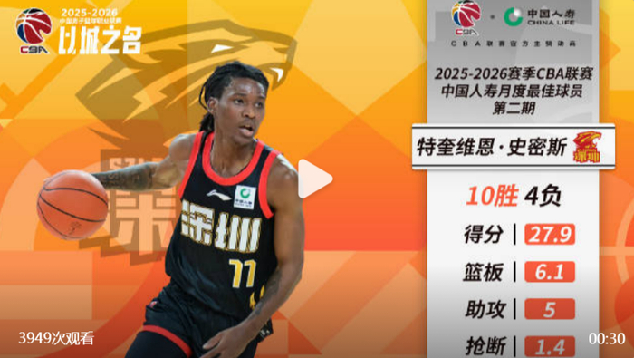 赢麻!CBA官宣:深圳核心贺希宁+史密斯 包揽月最佳球员+外援|深圳男篮|男篮|篮板|月度|中国男篮_新浪体育_新浪新闻